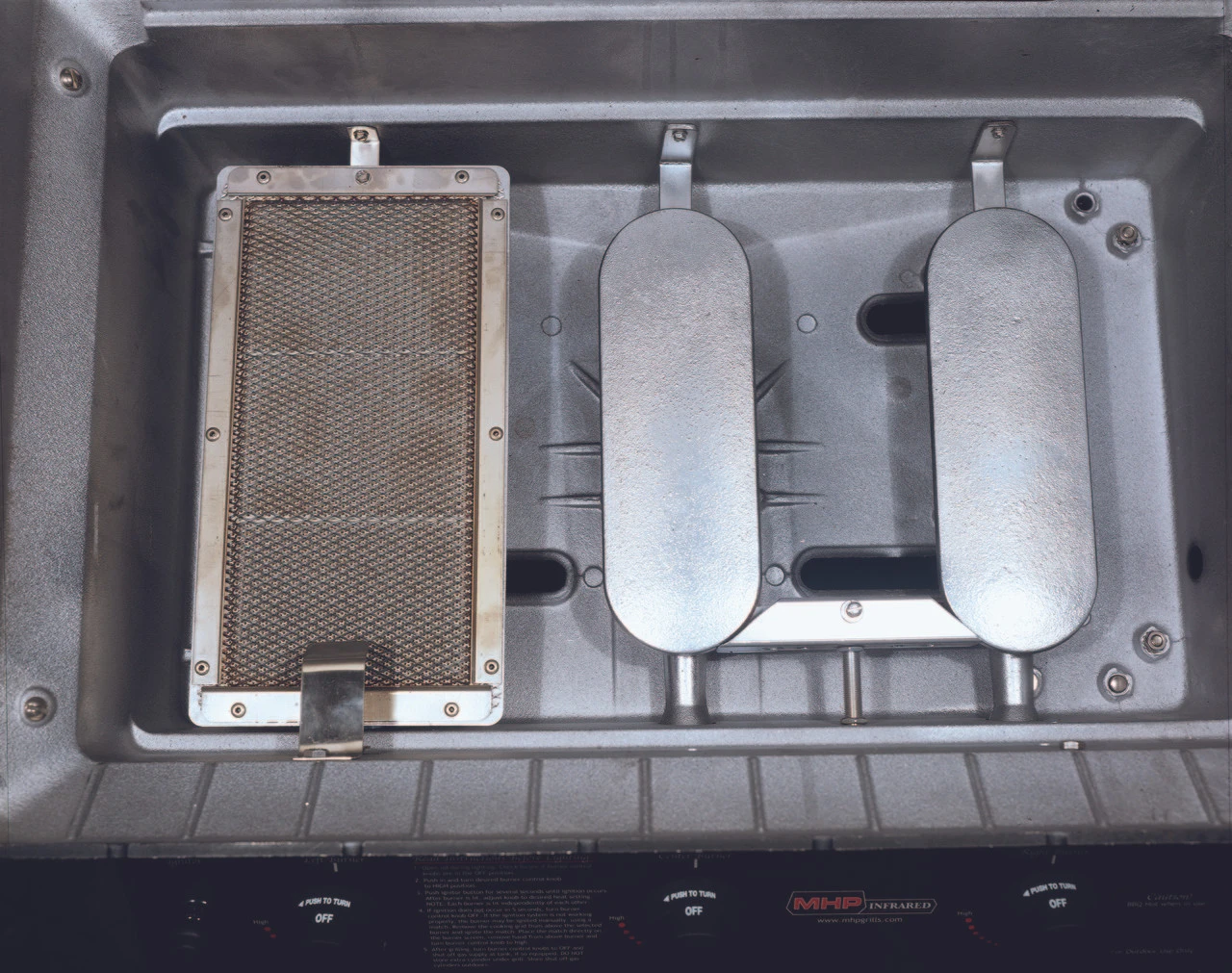 - This hybrid grill offers a two-in-one burner system for greater cooking versatility, Two Cast Stainless Steel And One Ceramic Infrared Burner