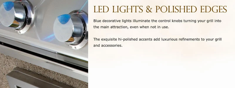 - Interior lights with hood-activated light switch for nighttime grilling